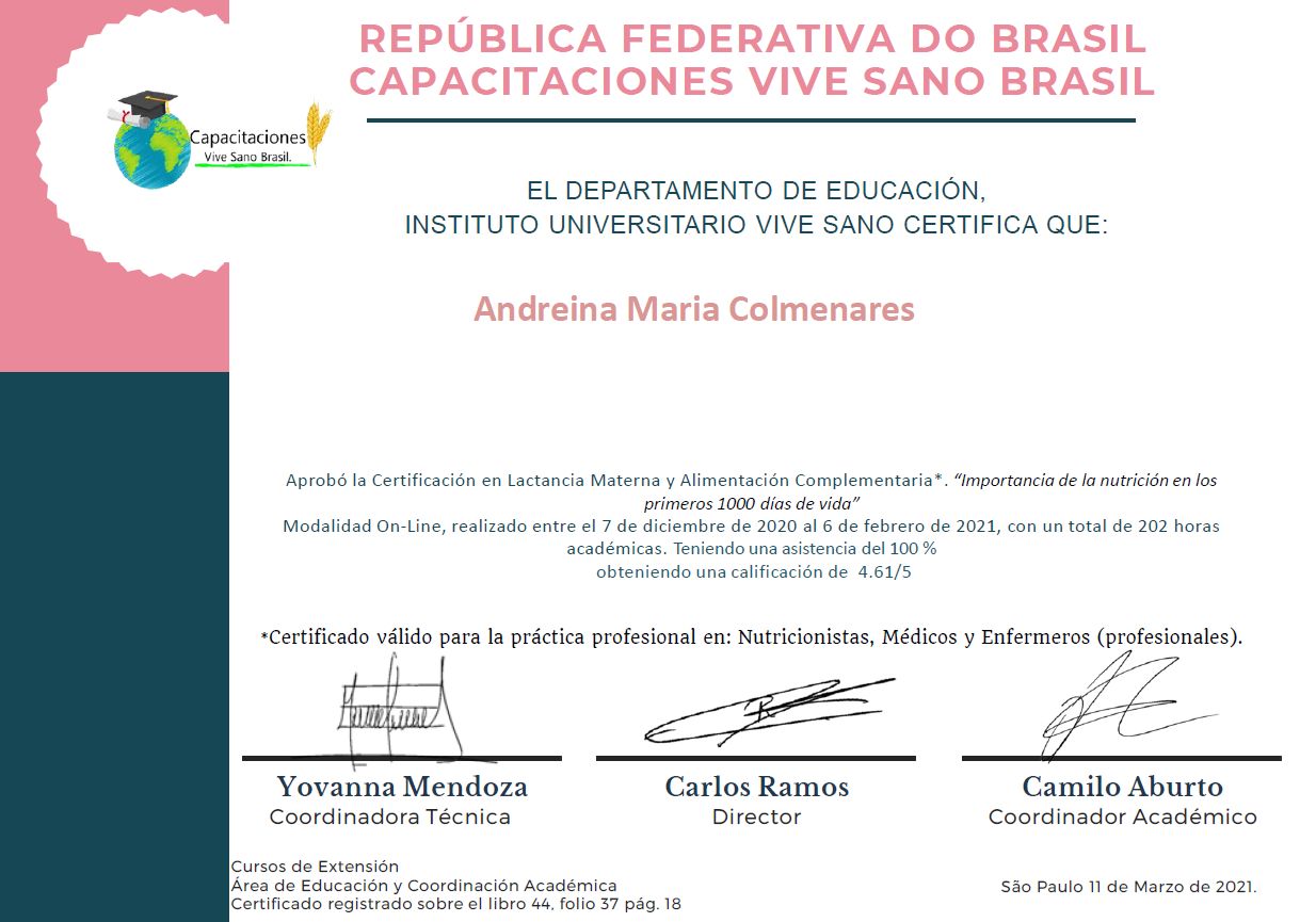 Me ha acompañado en la alimentación de mi bebé por más de un año y con sus orientaciones/ recomendaciones mi bebé tiene una dieta variada y gran aceptación por los diversos alimentos.